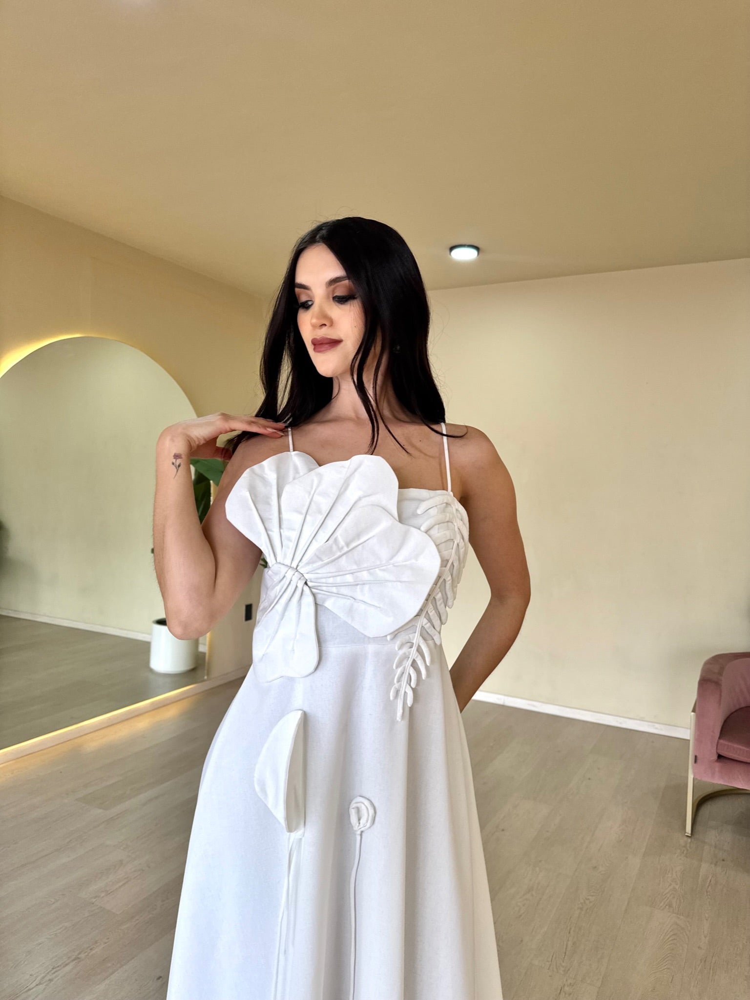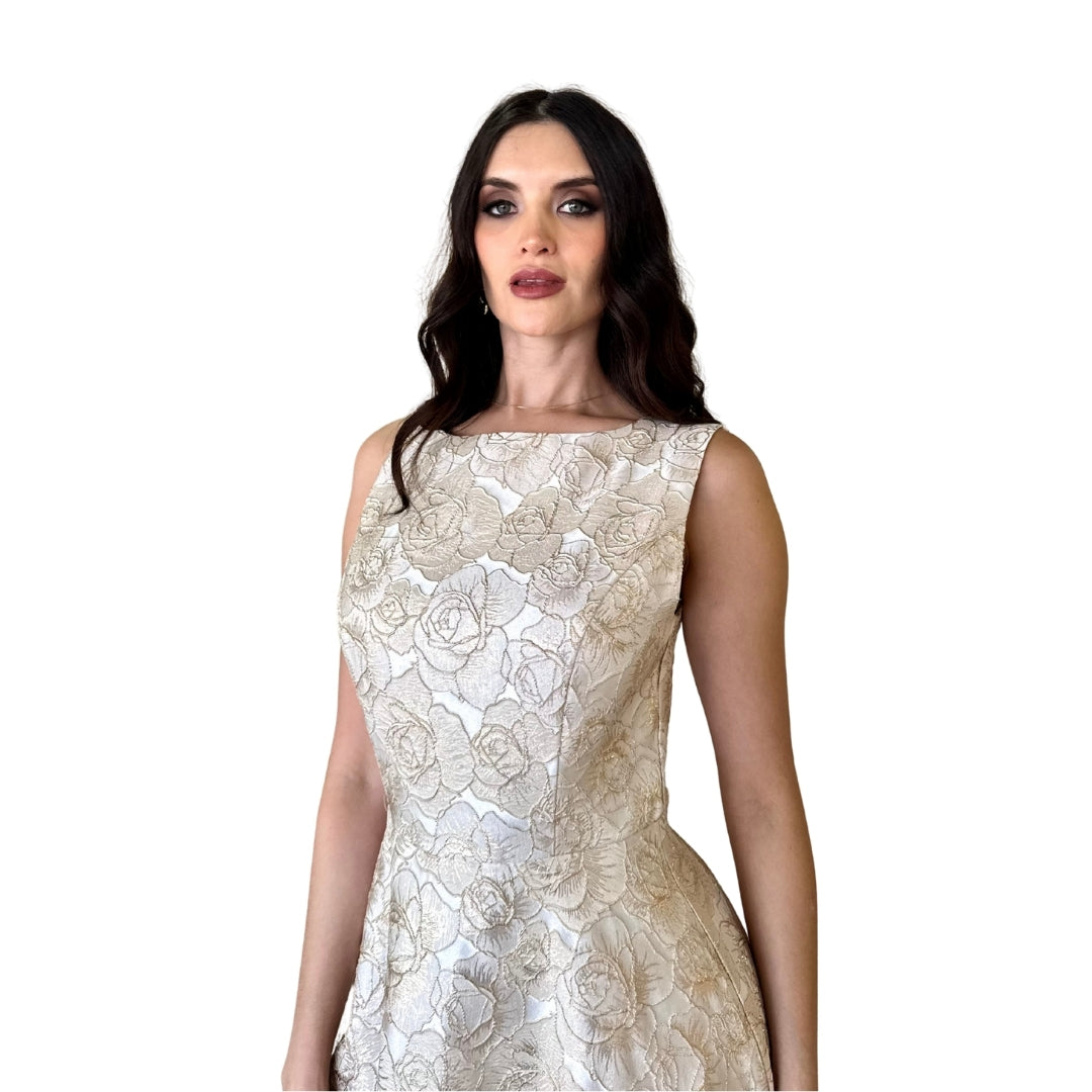 Pre-Orden Ellen | Vestido midi con aplicaciones de flores ivory - ivory / Mediana