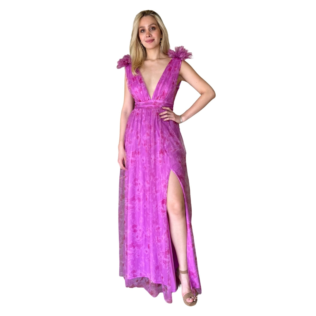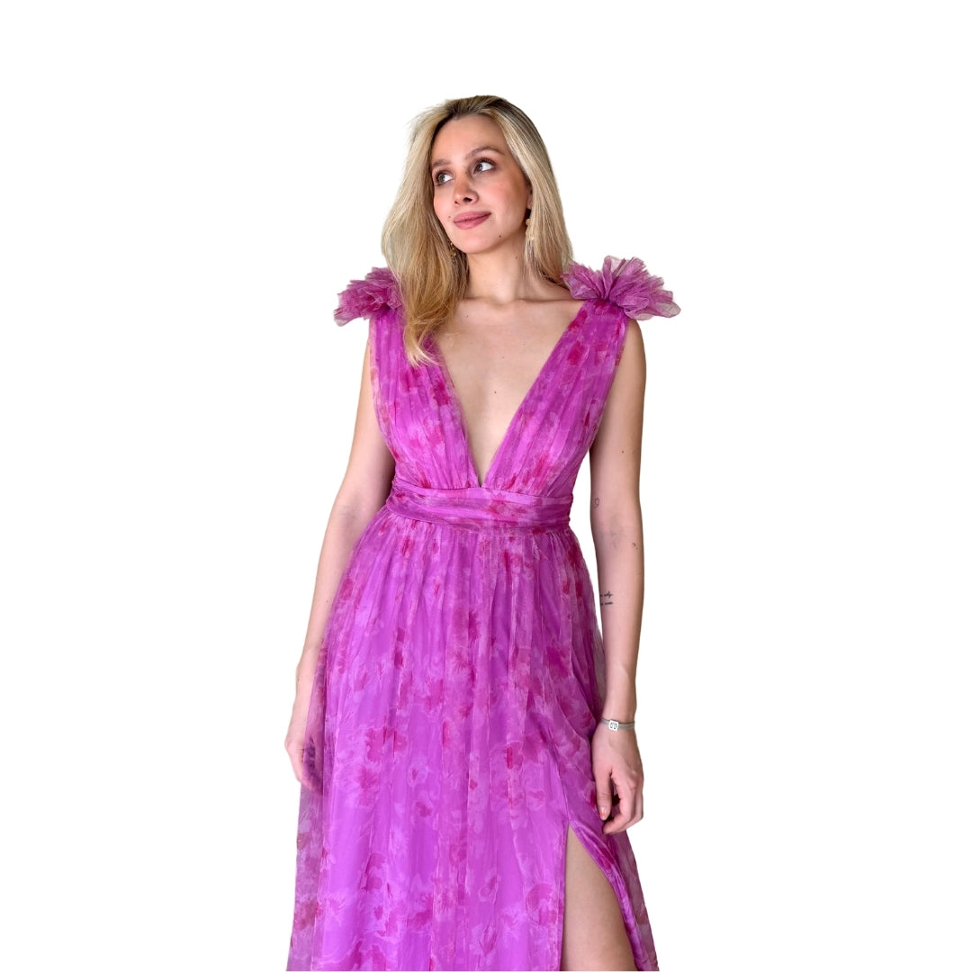 Karlota | Vestido largo tul estampado magenta - Chica / Magenta