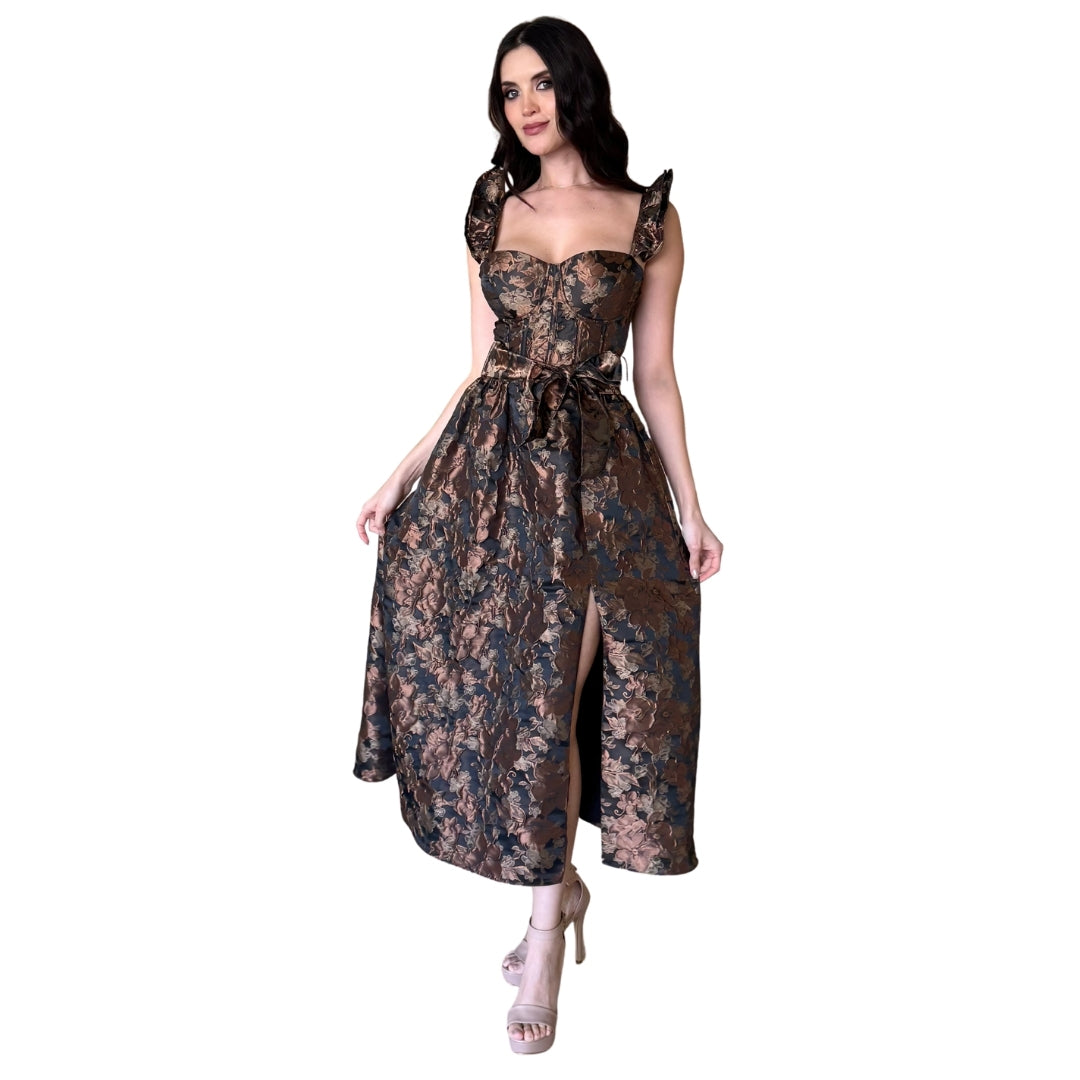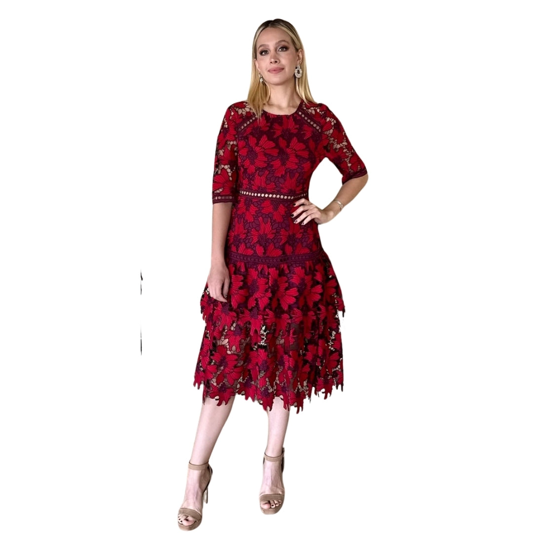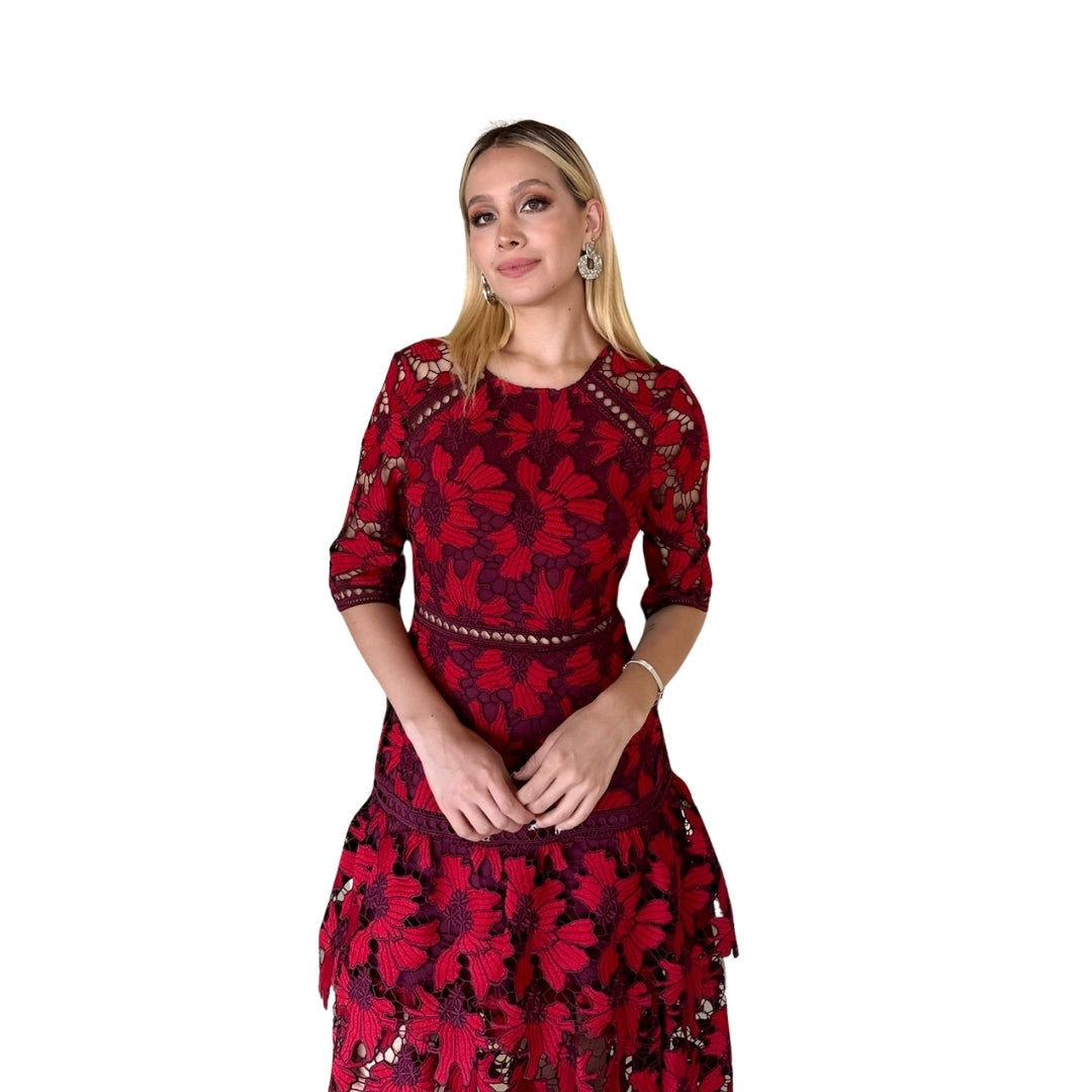 Libby | Vestido midi bordado floral durazno - Durazno / Grande