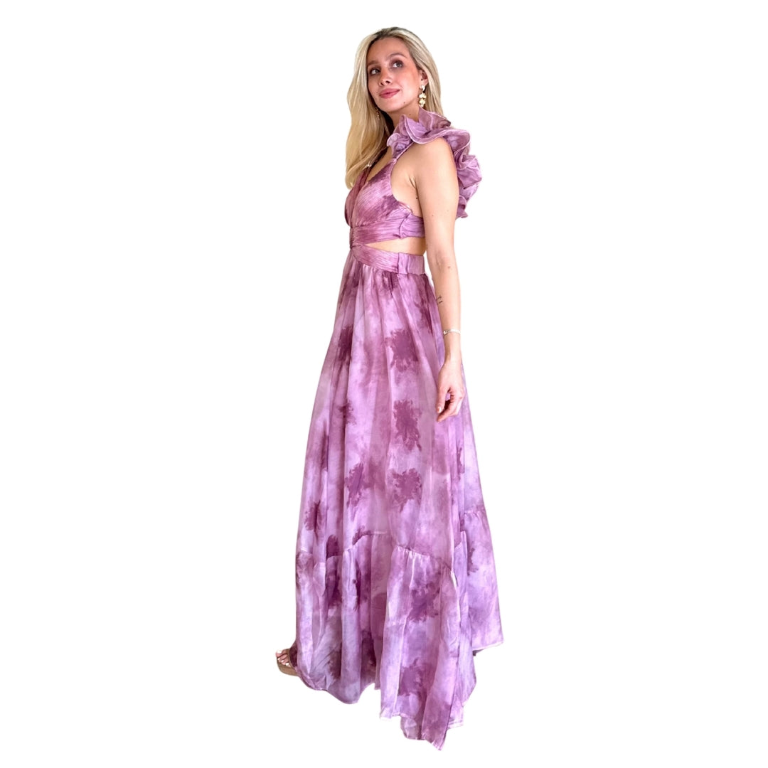 Vestido largo con fruncido lila - Mediana / Lila