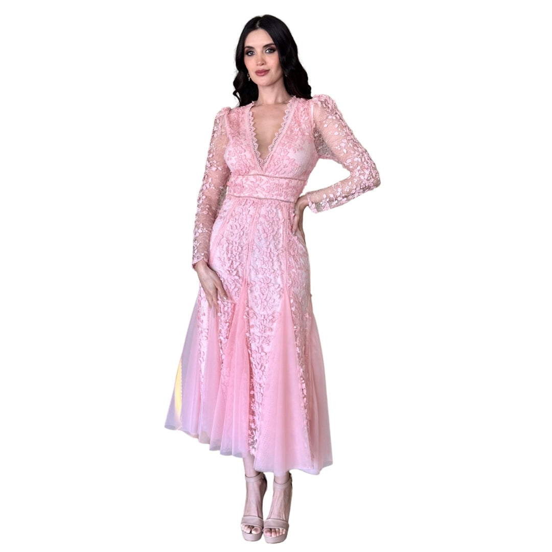 Vestido largo encaje flores rosa - Mediana / Rosa pastel