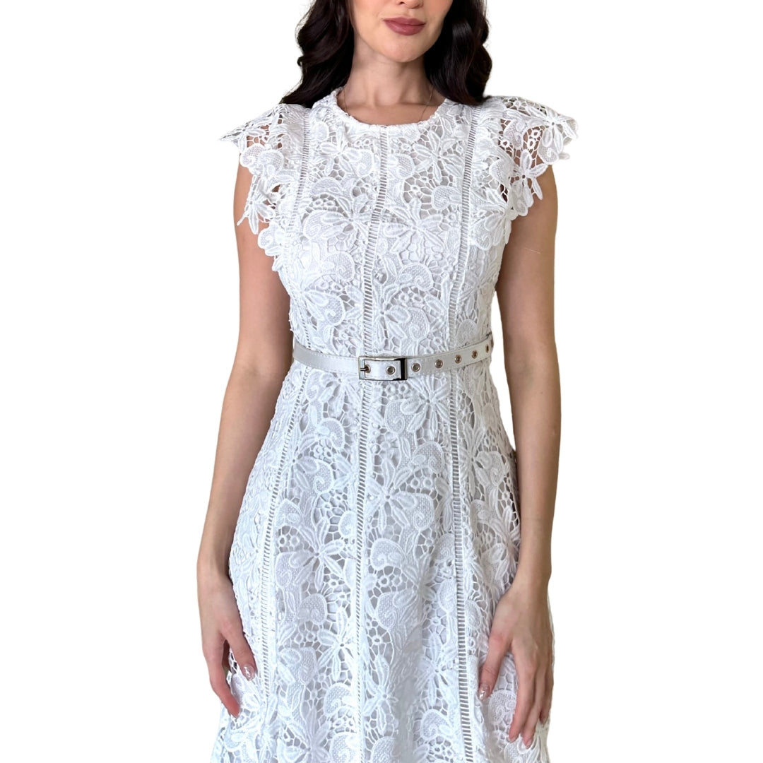 Kass | Vestido midi de encaje blanco olan asimétrico - Mediana / Blanco