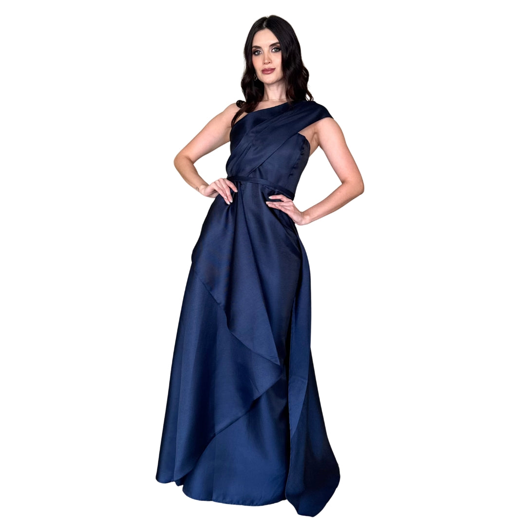 Detalles: tela satinada, olan en falda asimétrico, cierre invisible en espalda, incluye copas, cierre invisible en espalda