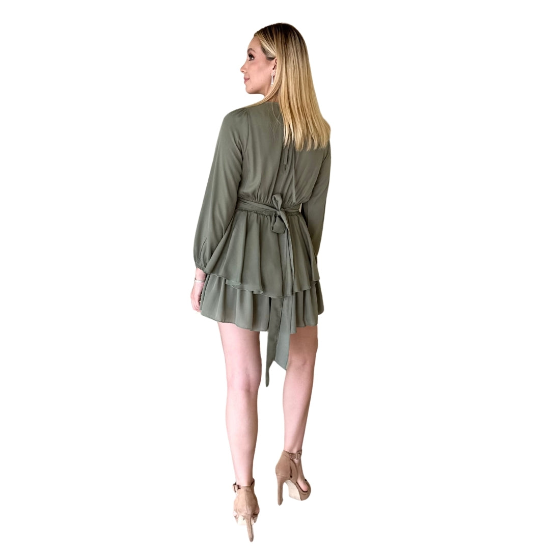 Detalle: manga larga, tela vaporosa, cinta ajustable en cintura y espalda, olan en falda, resorte en cintura y mangas
