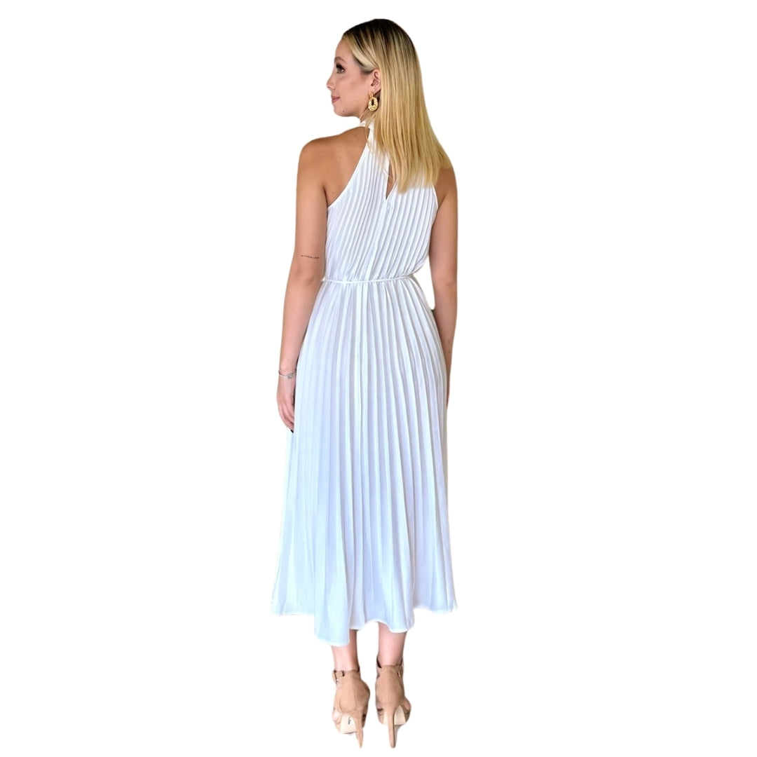 Mariana | Vestido midi plisado blanco
