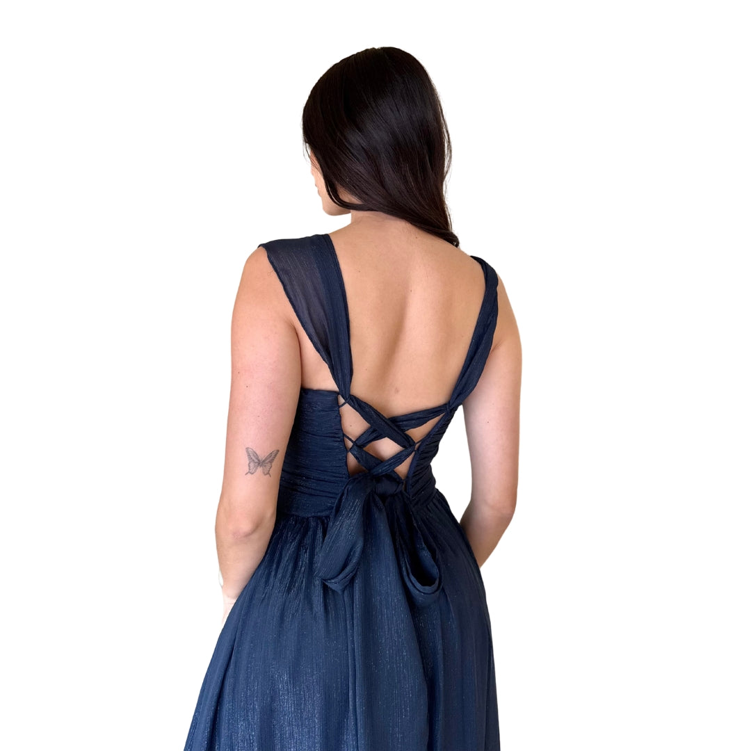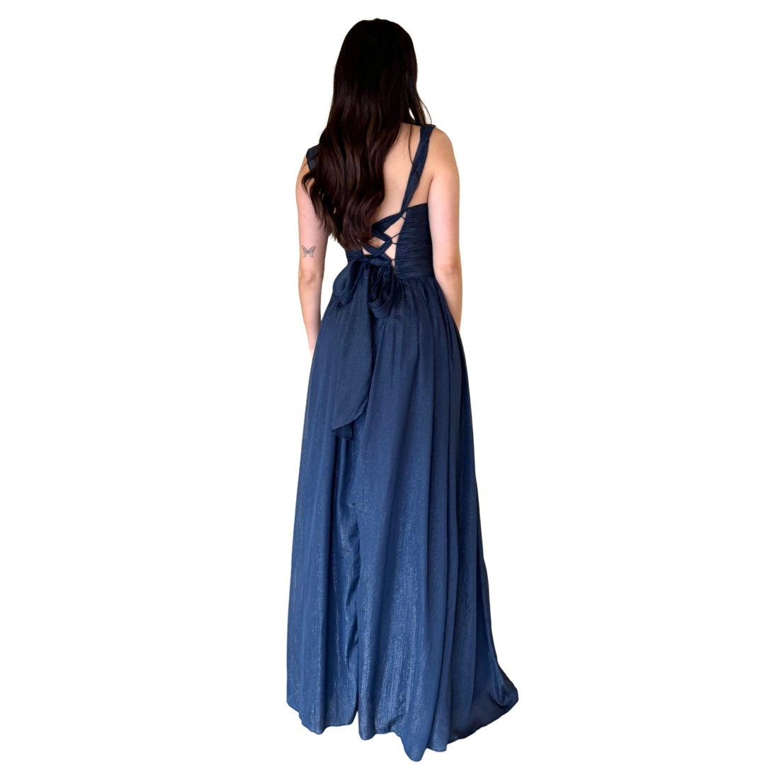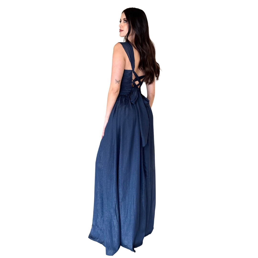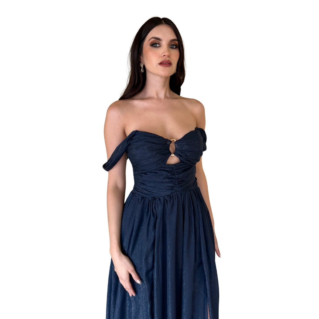 Belina | Vestido largo con argolla azul marino
