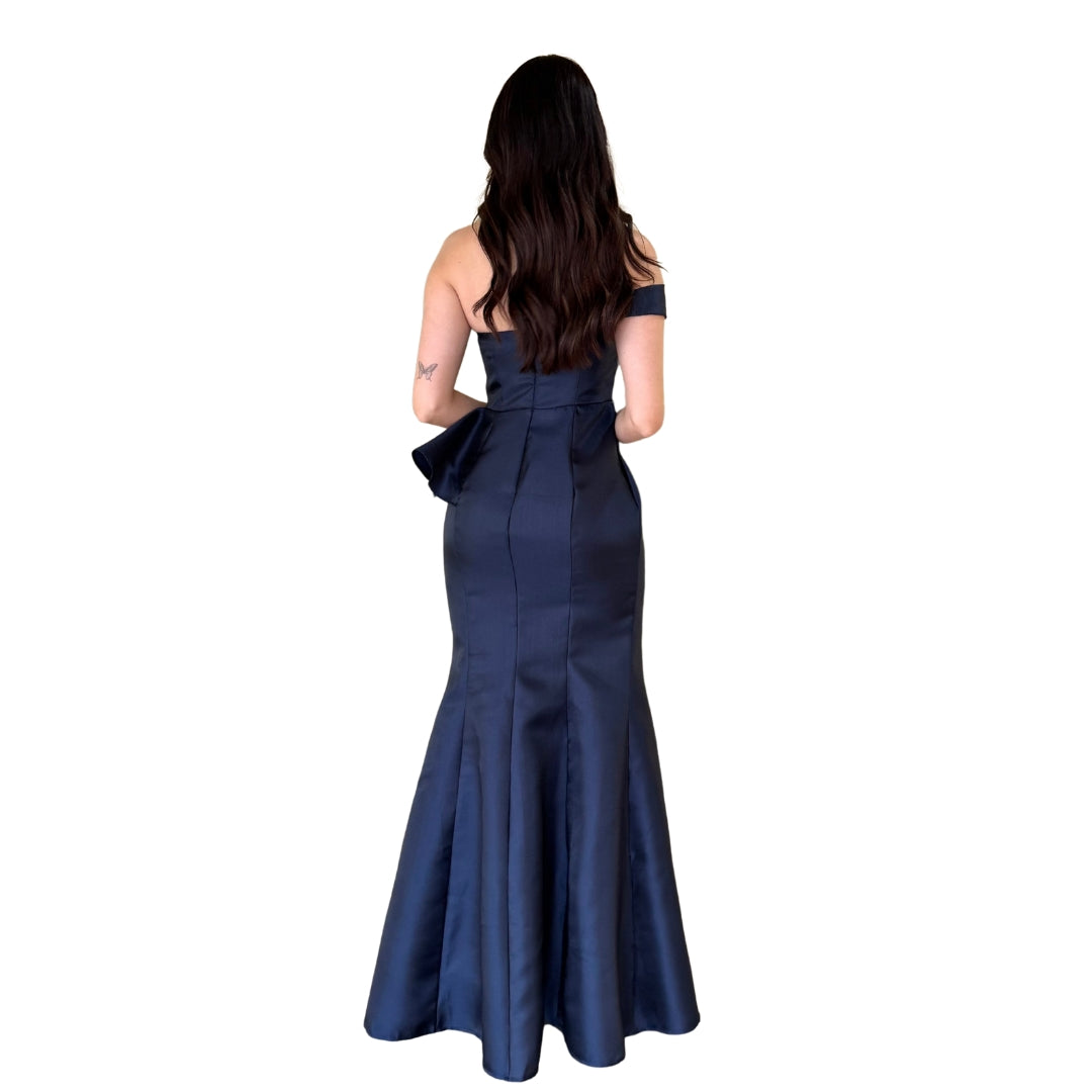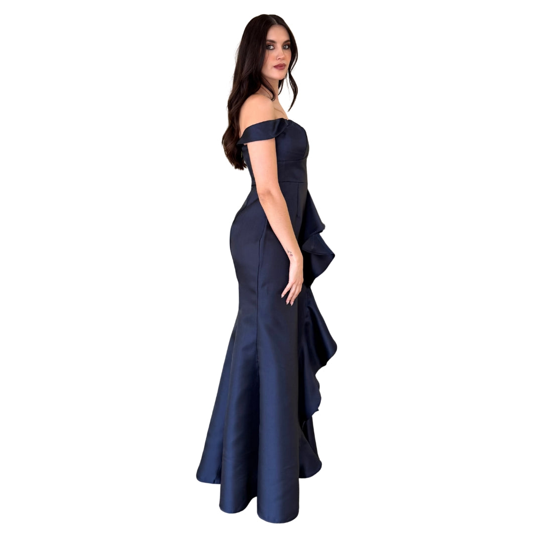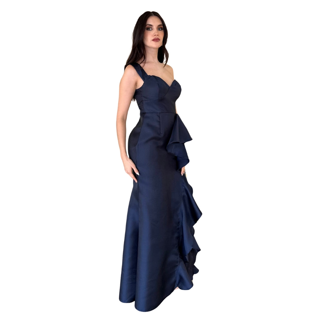 Gabrielle | Vestido largo con olan azul marino