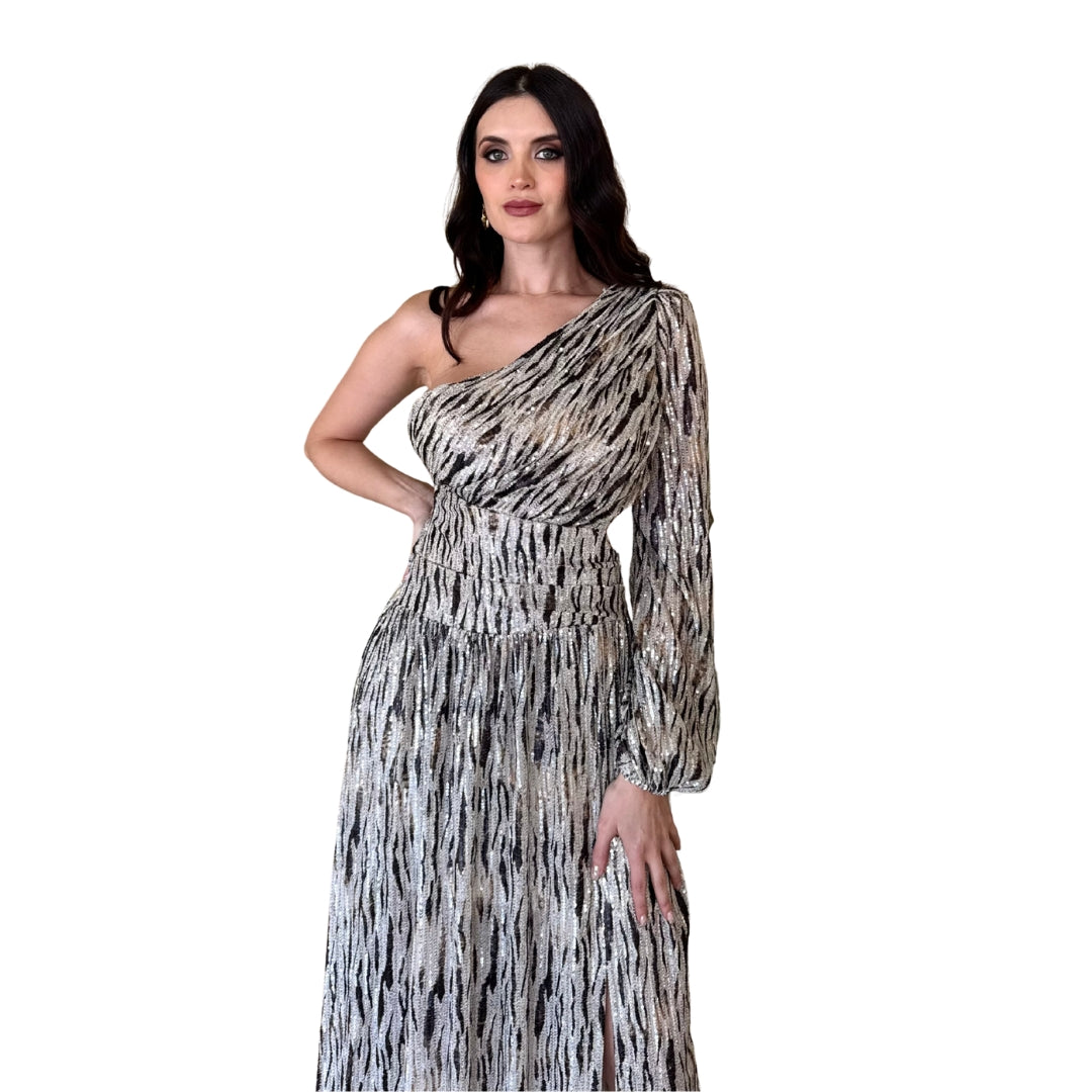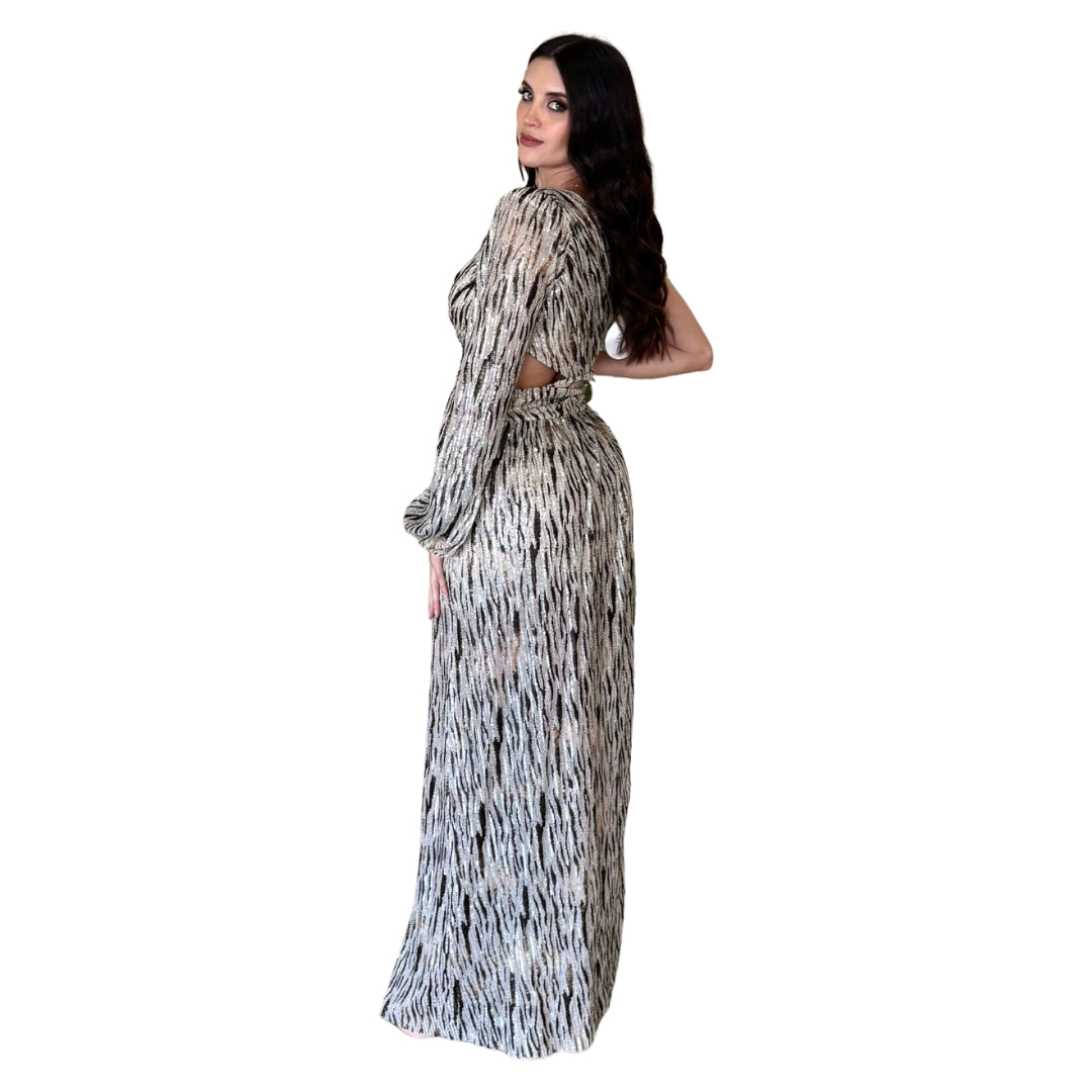 Genesis | Vestido largo lentejuelas cut out perla
