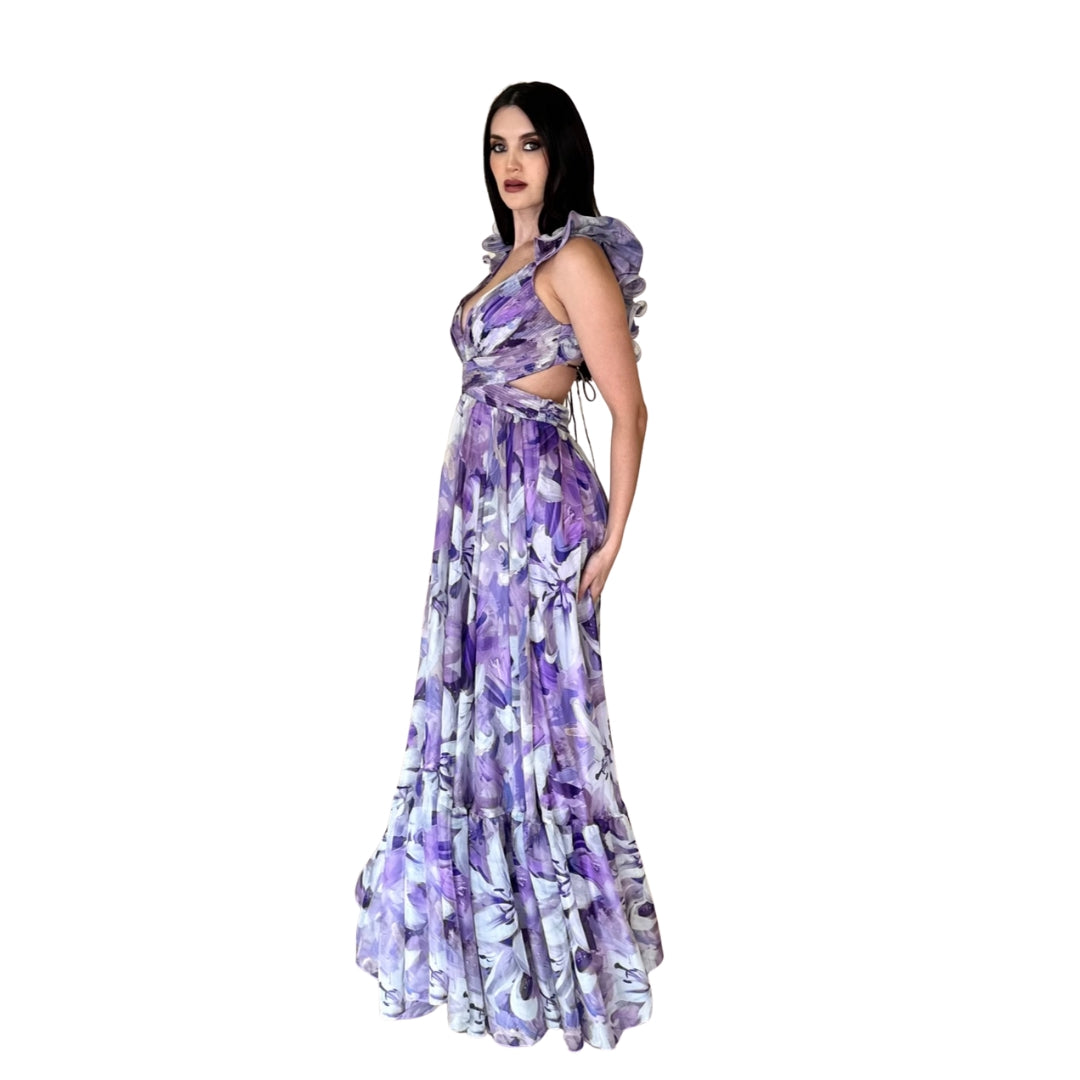 Detalles: cinta ajustable en espalda tipo corset, olanes en escote de espalda, tela vaporosa, aberturas a los costados, cierre invisible