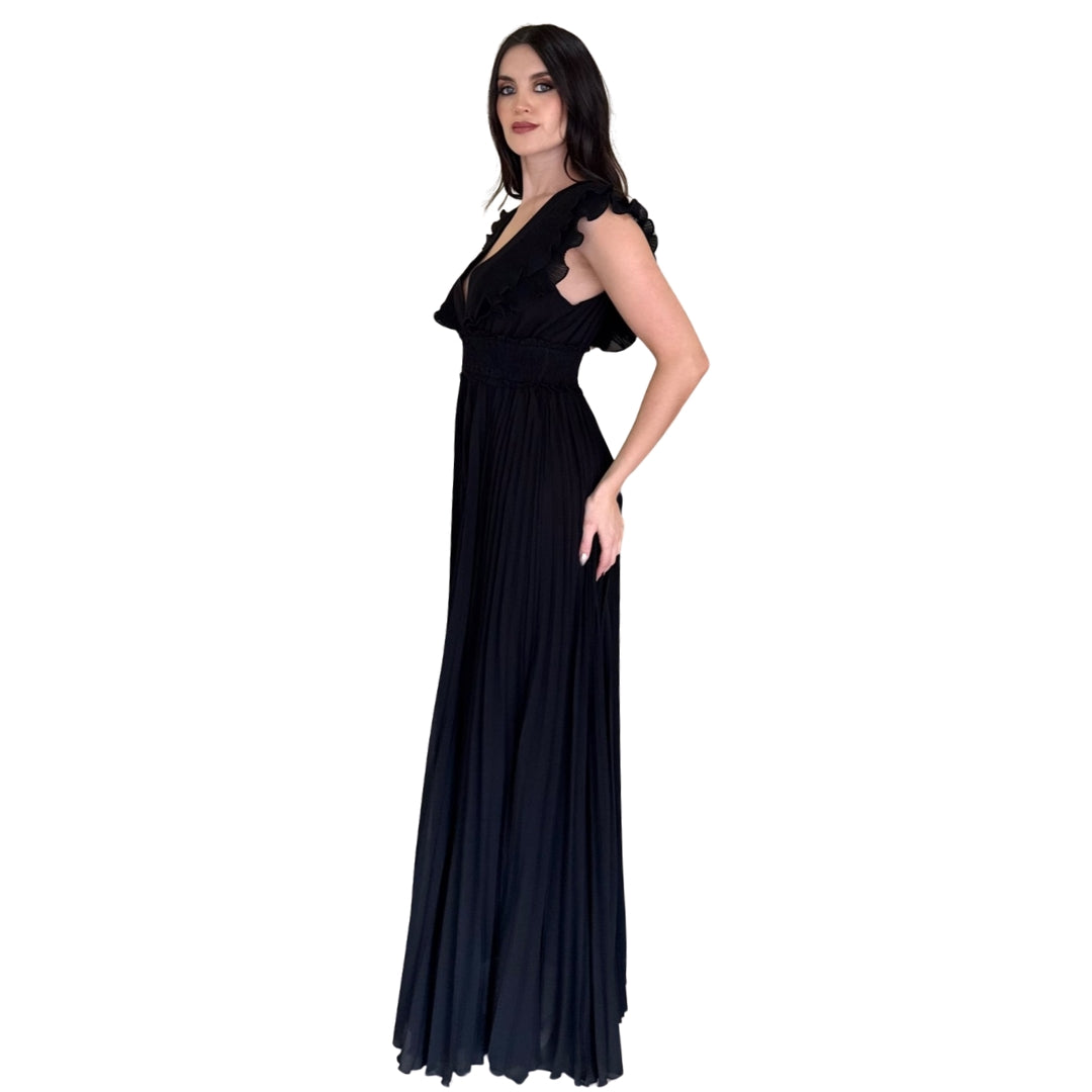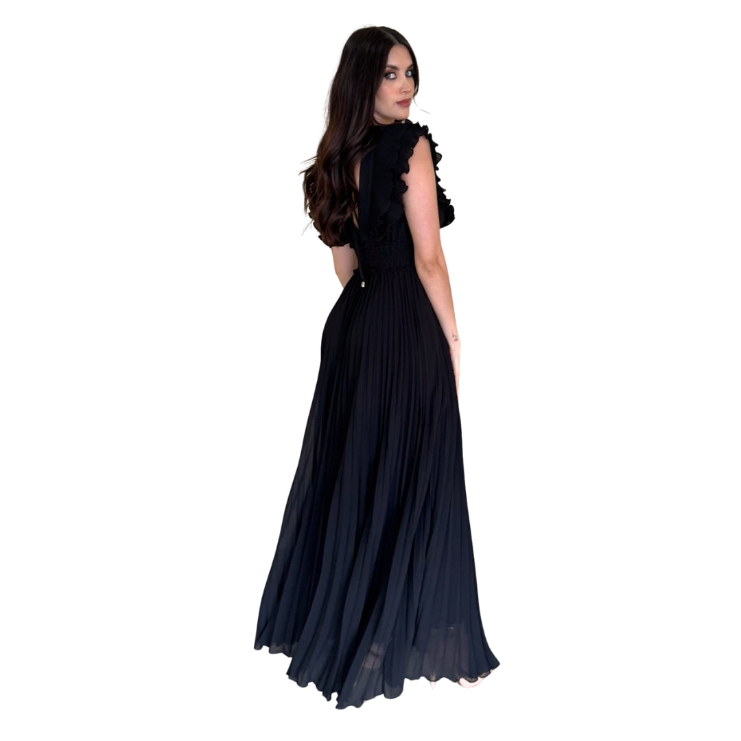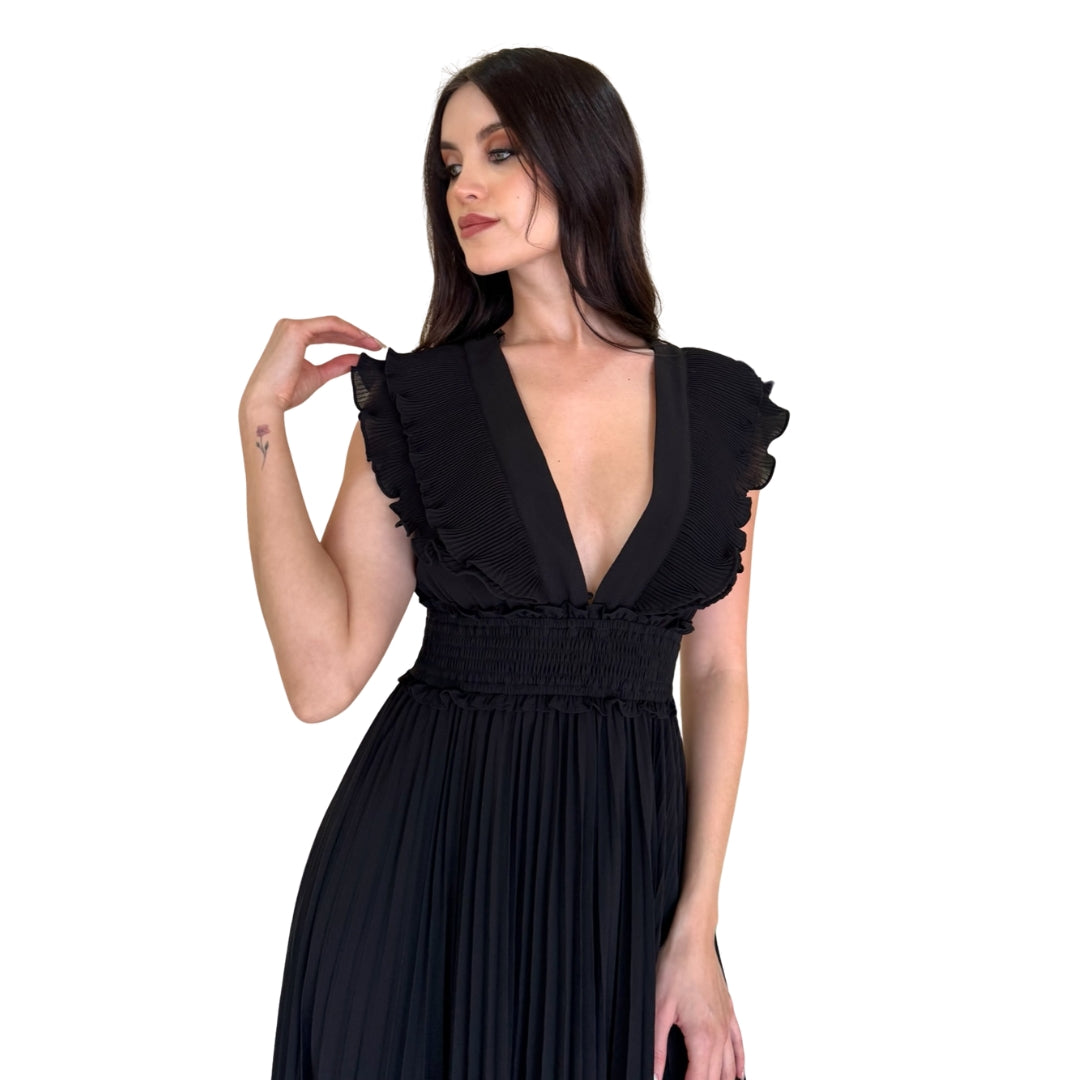 Detalles: manga sisada, resorte en cintura, cinta ajustable en espalda, falda plisada, olanes plisados en top