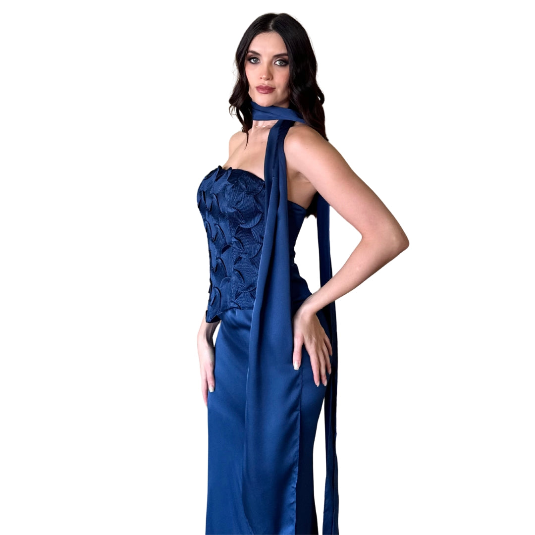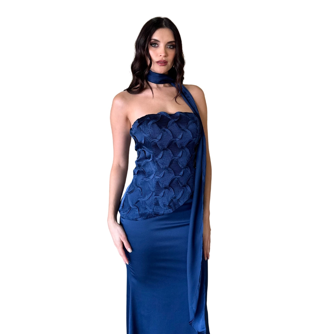 Nirvana | Vestido largo mermeid dos piezas drapeado azul rey