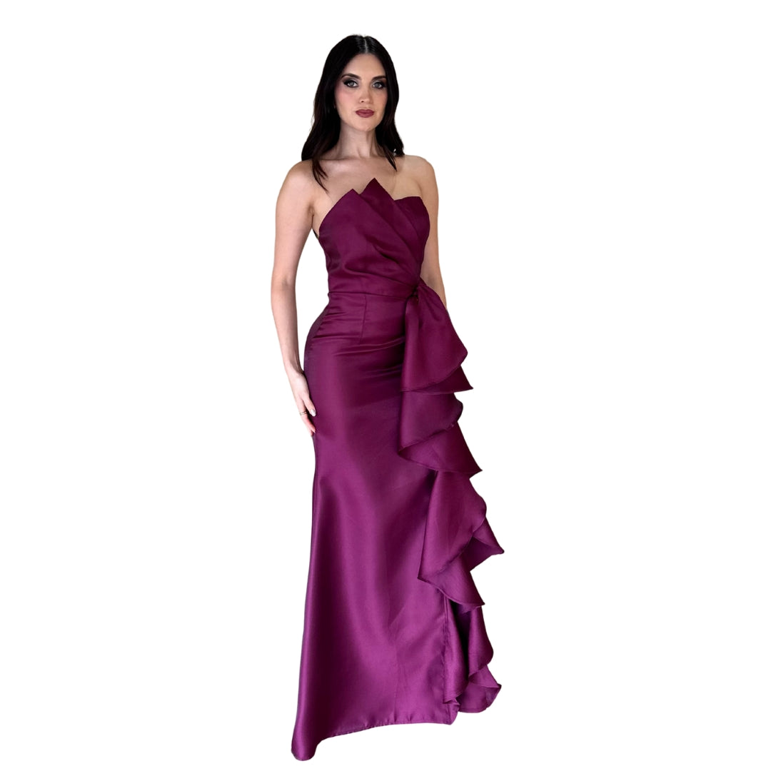 Rosario | Vestido largo olan vino