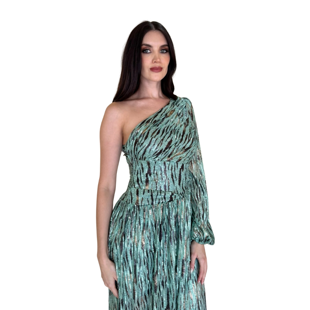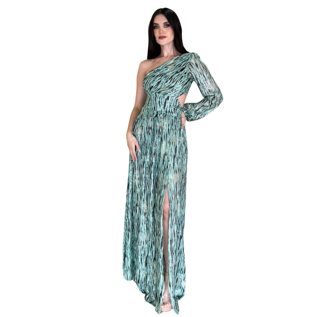 Genesis | Vestido largo lentejuelas cut out menta