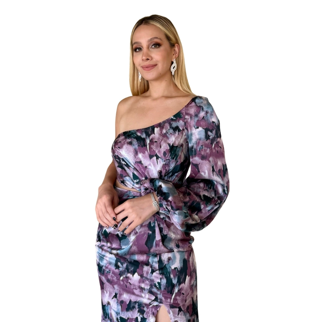 Shakti | Vestido largo con abertura multicolor purpura