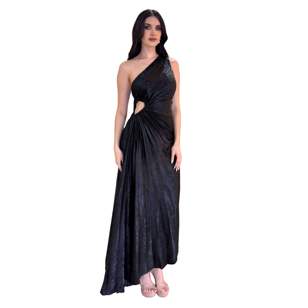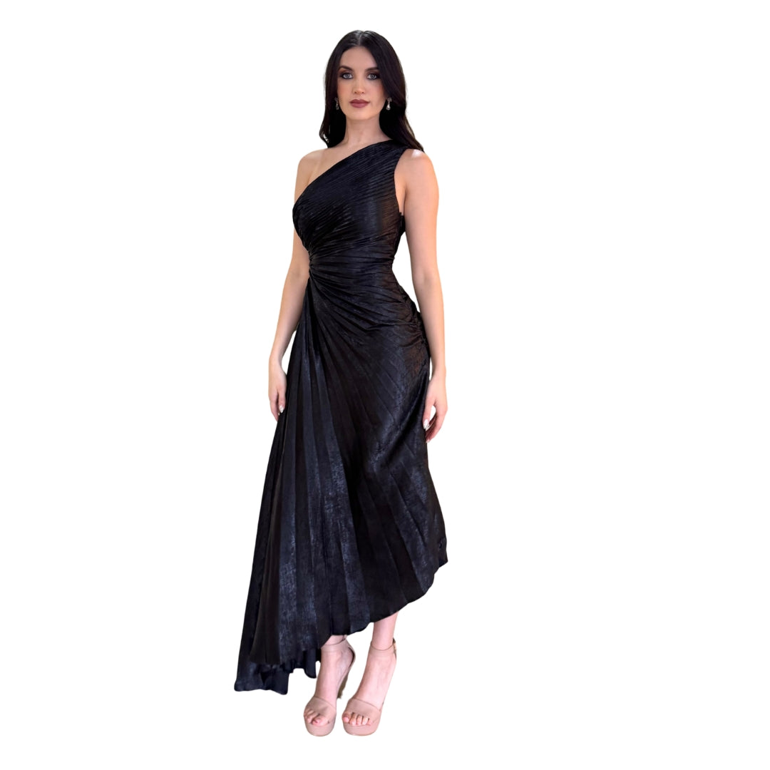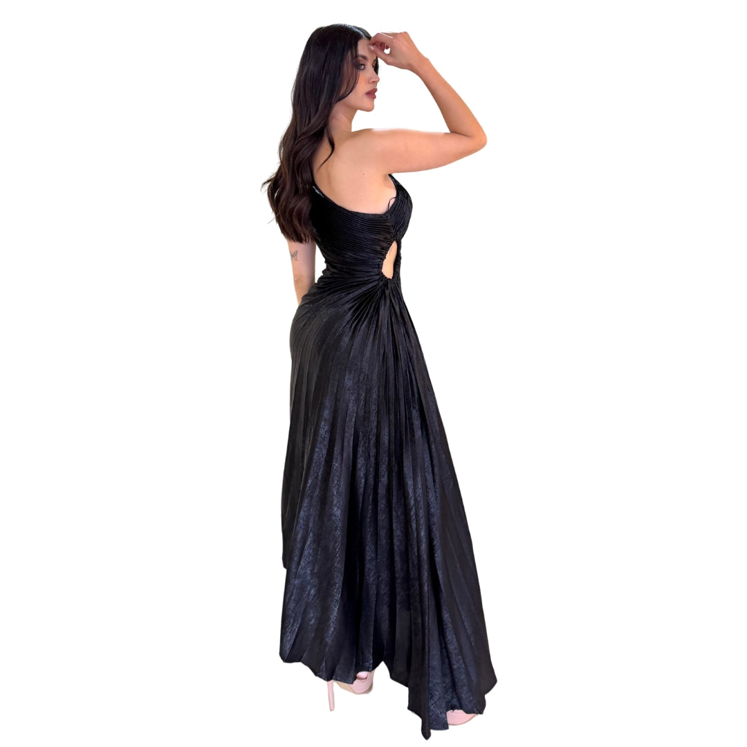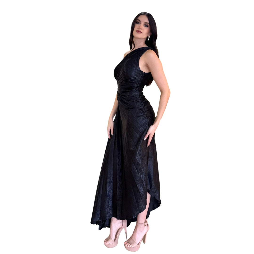 Detalles: tela con textura tipo plisada, cauda asimétrica en falda, abertura con resorte en cintura, cierre invisible a un costado