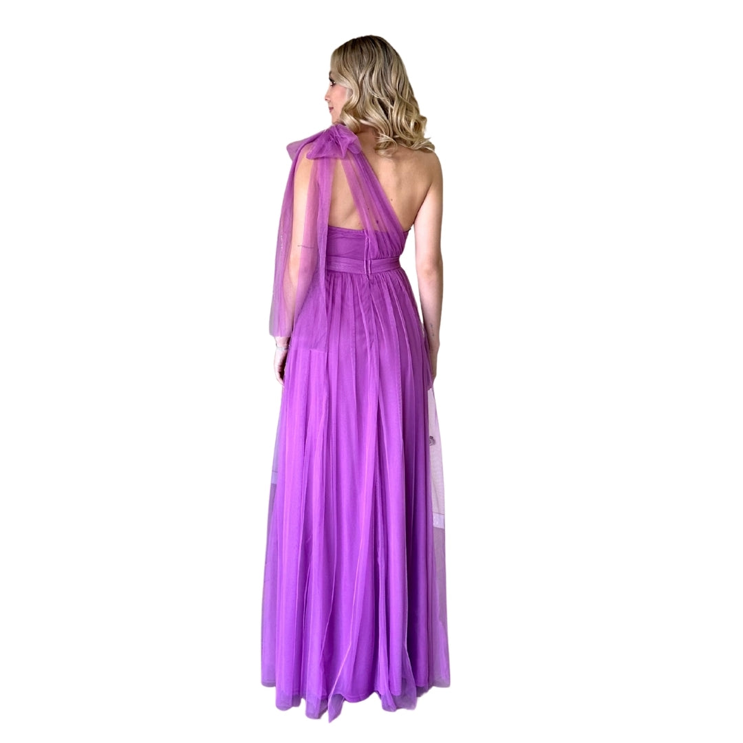 Myra | Vestido largo tul asimétrico malva