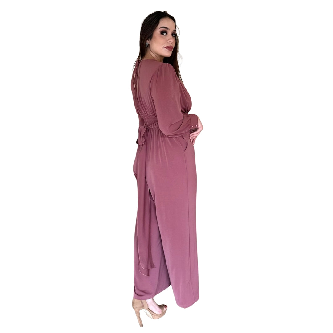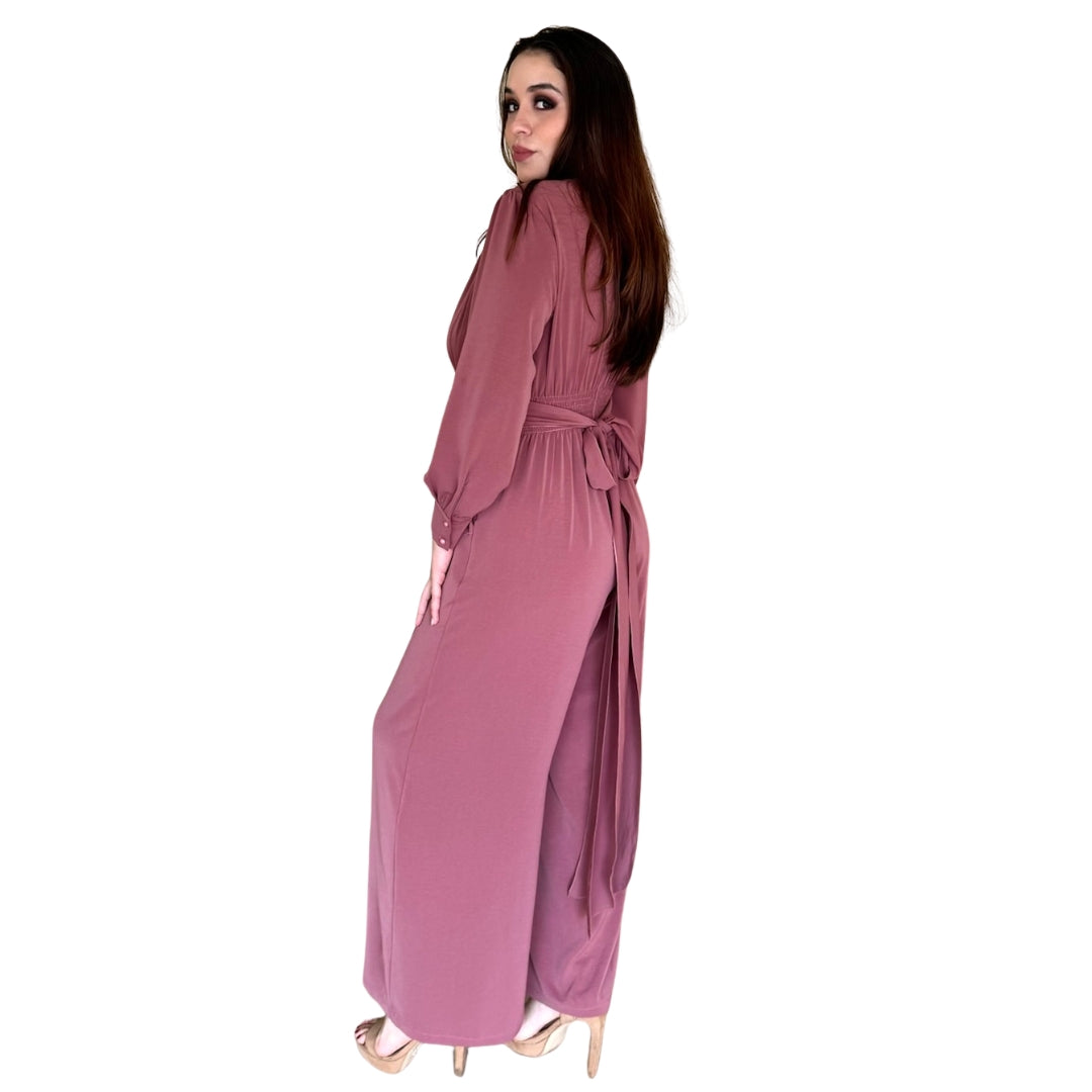 Nuria | Palazzo manga larga con cinta mauve