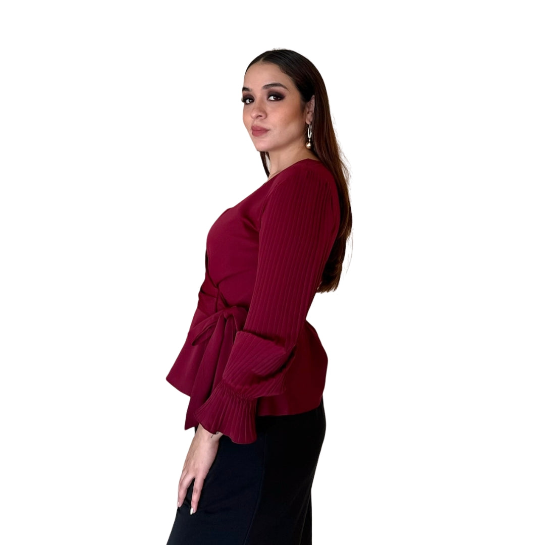 Detalles: detalle de cinta ajustable, mangas plisadas, resorte en cintura y al final de la manga
