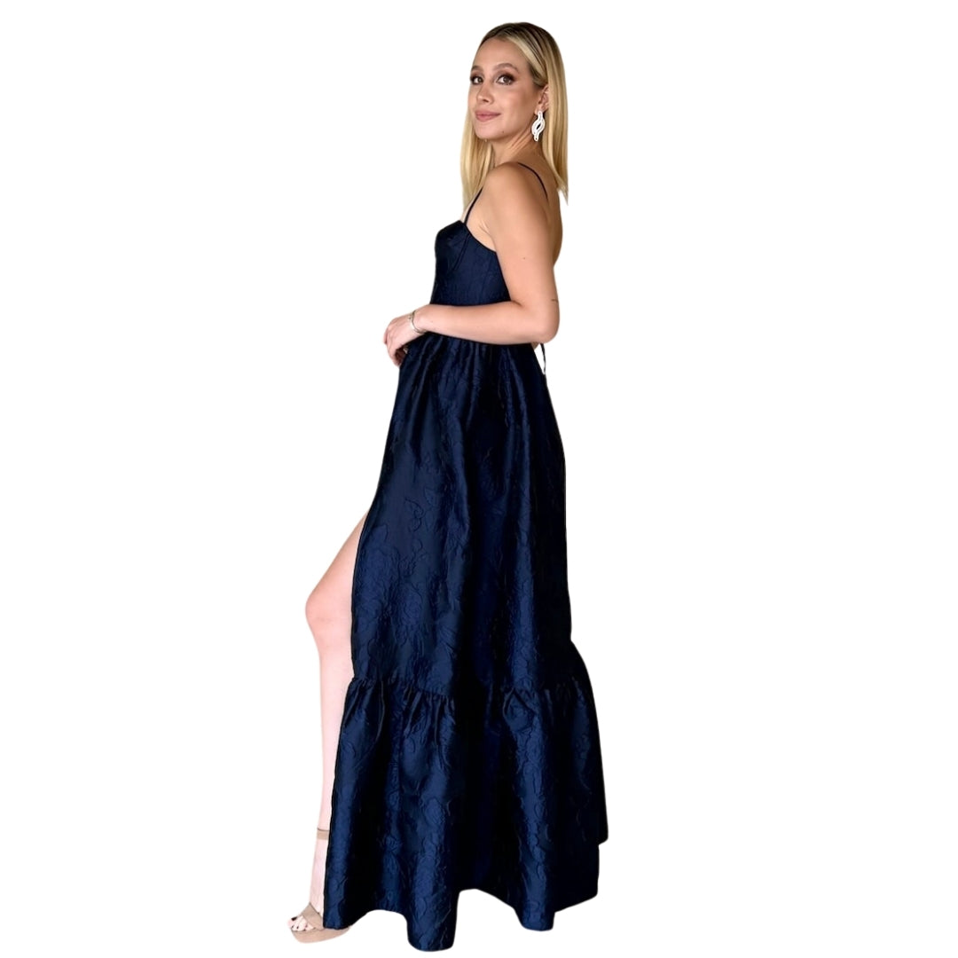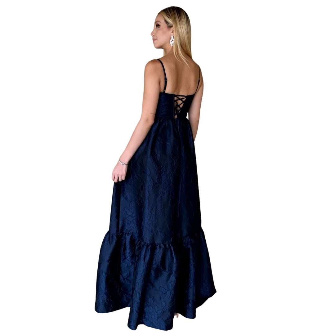 Detalles: tela con textura floral, copas en top, top bustier, abertura en pierna, tirantes ajustables, espalda con ajuste tipo corset